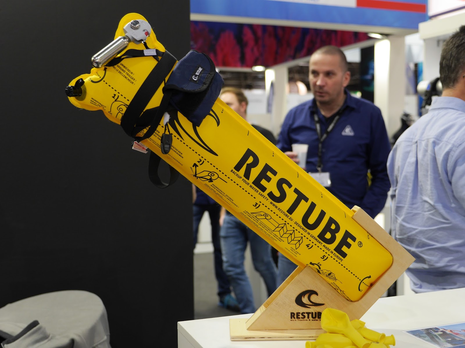 Restube er et kompakt flytehjelpemiddel man kan ha med i vannet under svømming og andre typer vannsportaktiviteter. Den blåses automatisk opp når brukeren aktiverer den påmonterte gasspatronen.